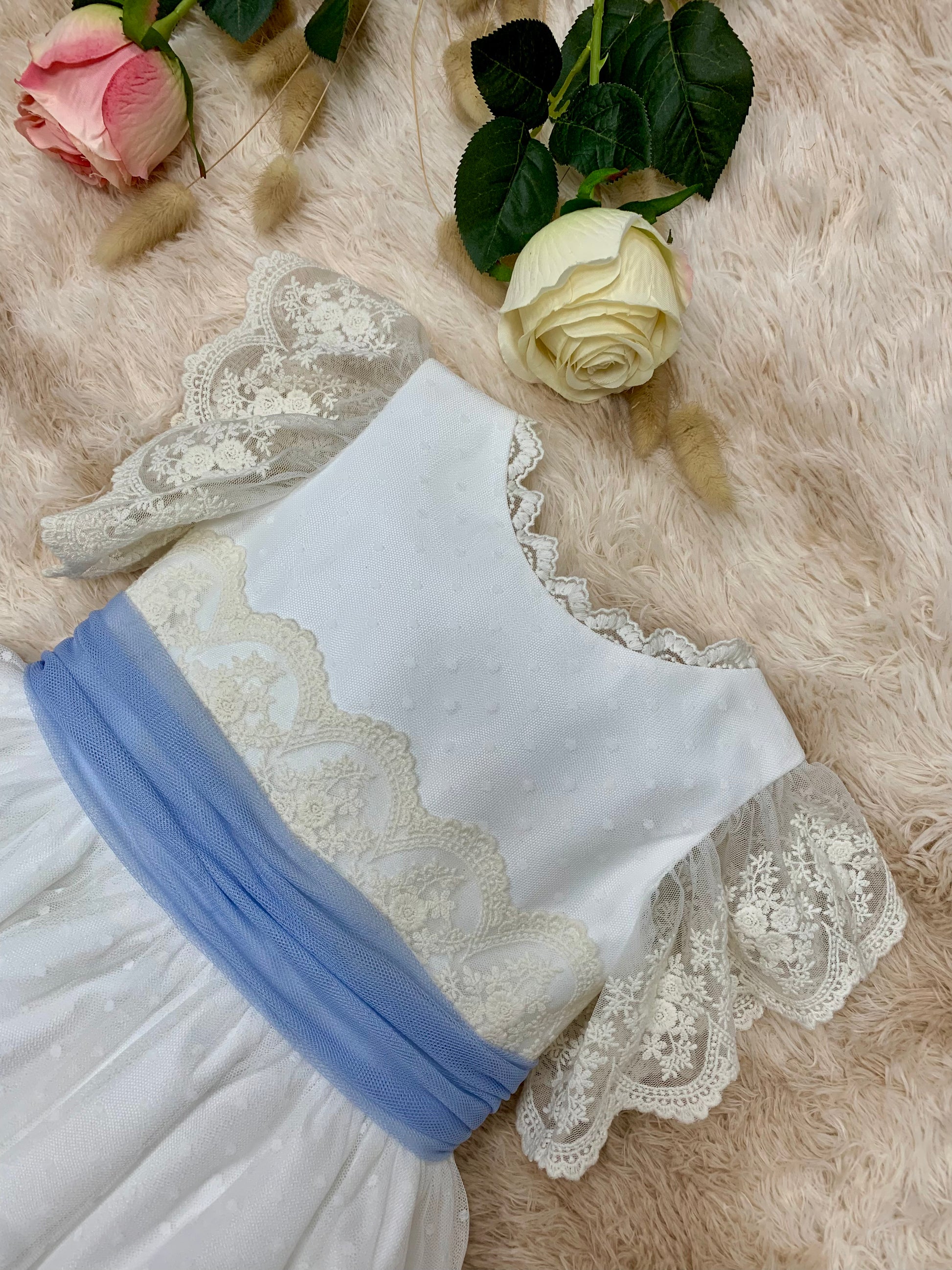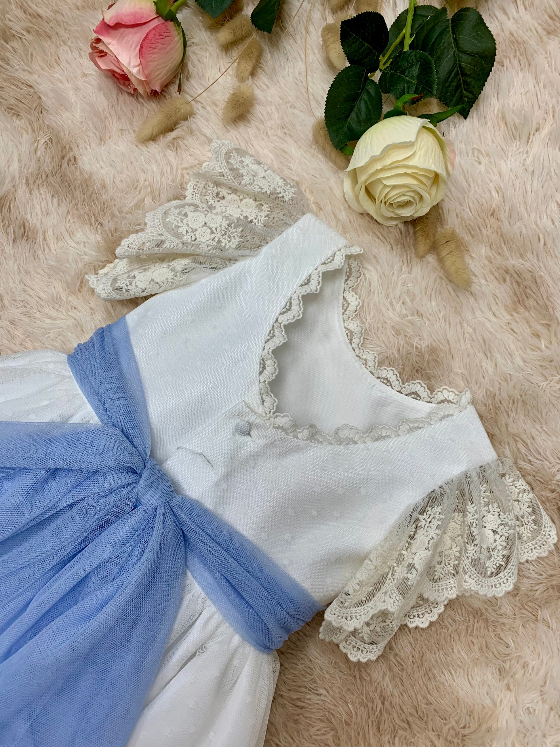 Vestido de tul y puntillas bordadas.